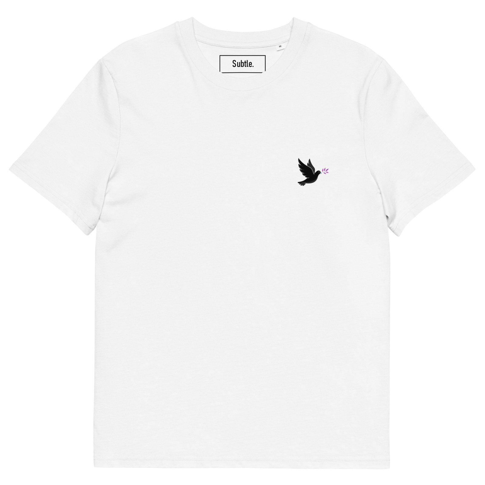 A white dove symbolizing the Holy Spirit. A subtle t-shirt design for every day.